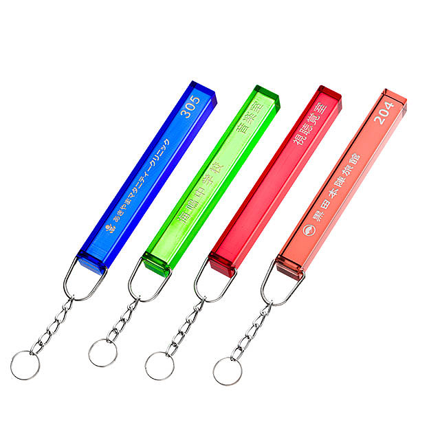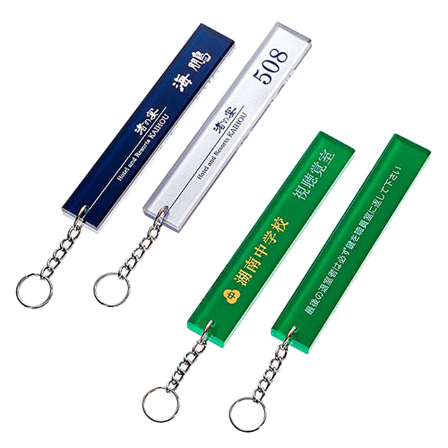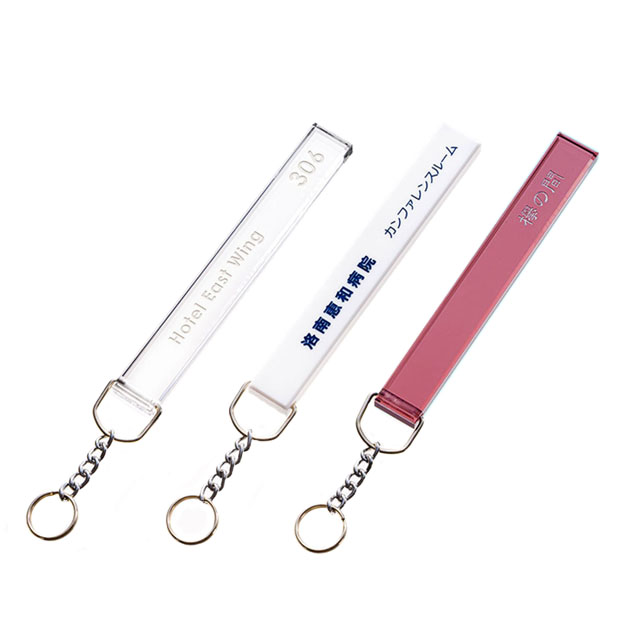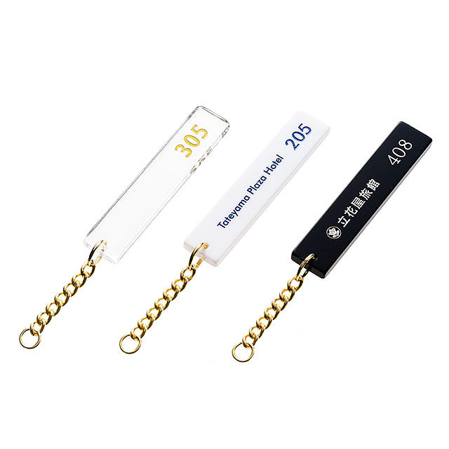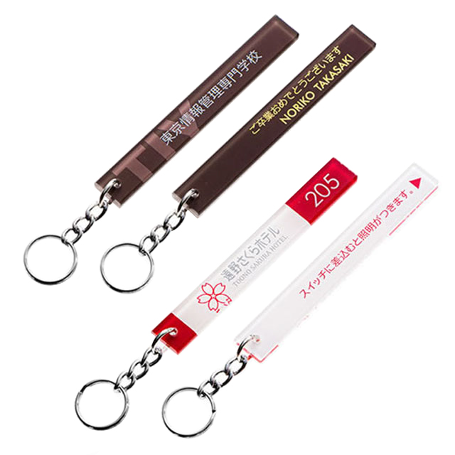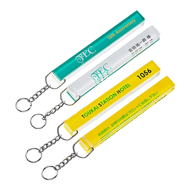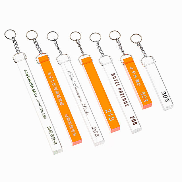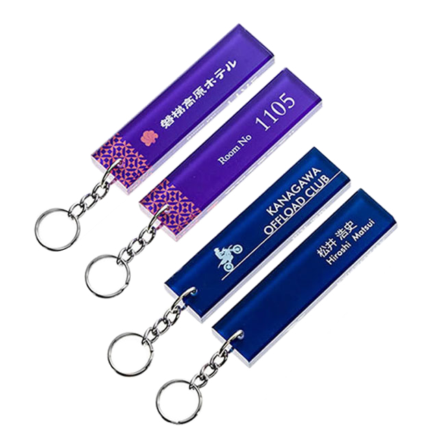 大手ホテルのルームキーホルダーと同じ、印刷面が傷がつかない、アクリル二層式内部プリント仕様。