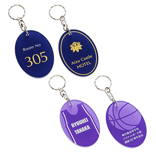大手ホテルや有名旅館のルームキーホルダーと同じ、印刷面が傷がつかない、アクリル二層式内部プリント仕様。