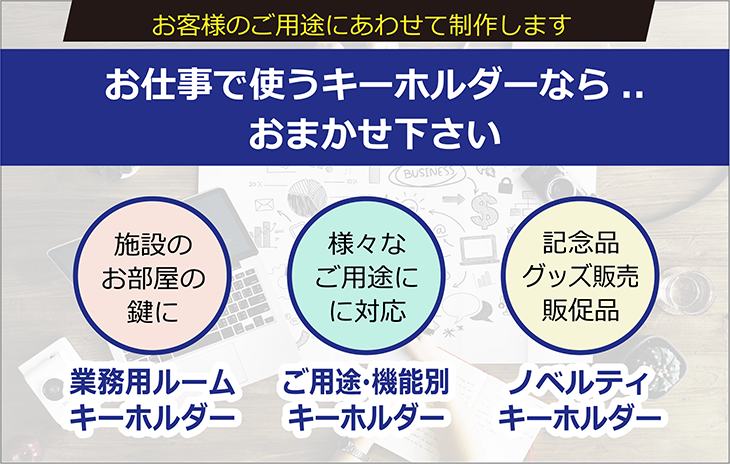 専門店がお客様の様々なご用途に対応したキーホルダーをご希望通りに製作します。